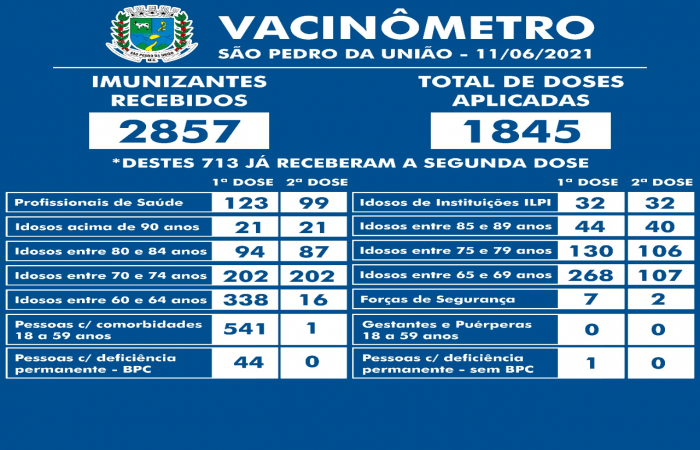 Vacinômetro São Pedro da União em 11/06/2021